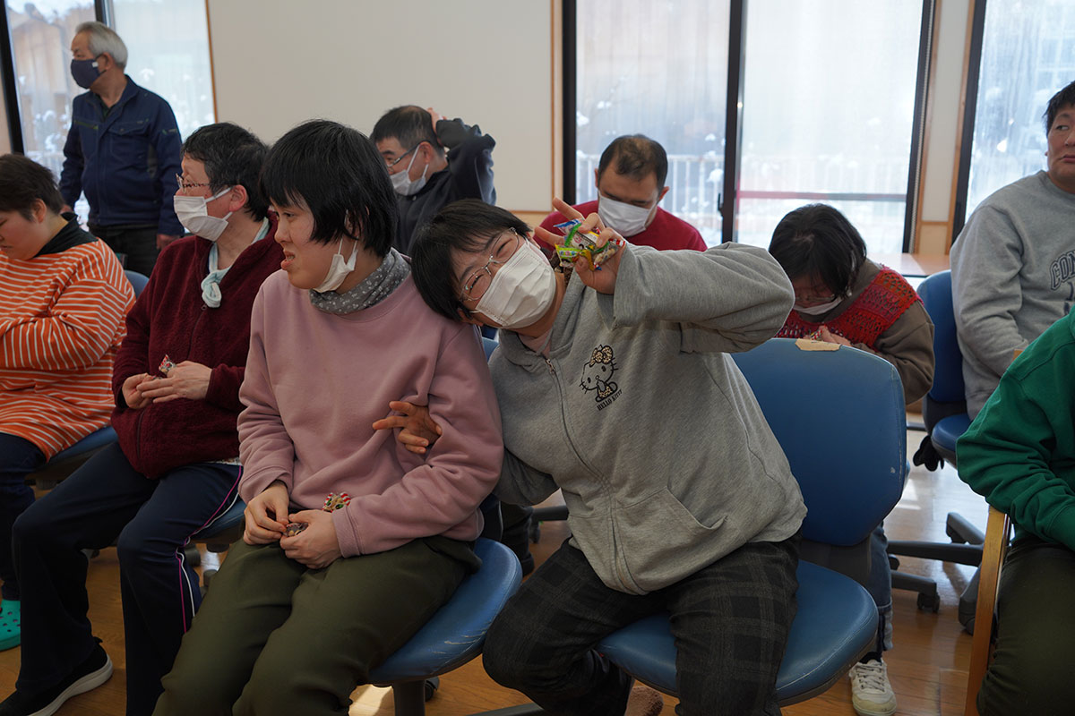 施設のみなさんと一緒に豆まきを楽しみながら、たくさんの笑顔があふれる時間となりました。